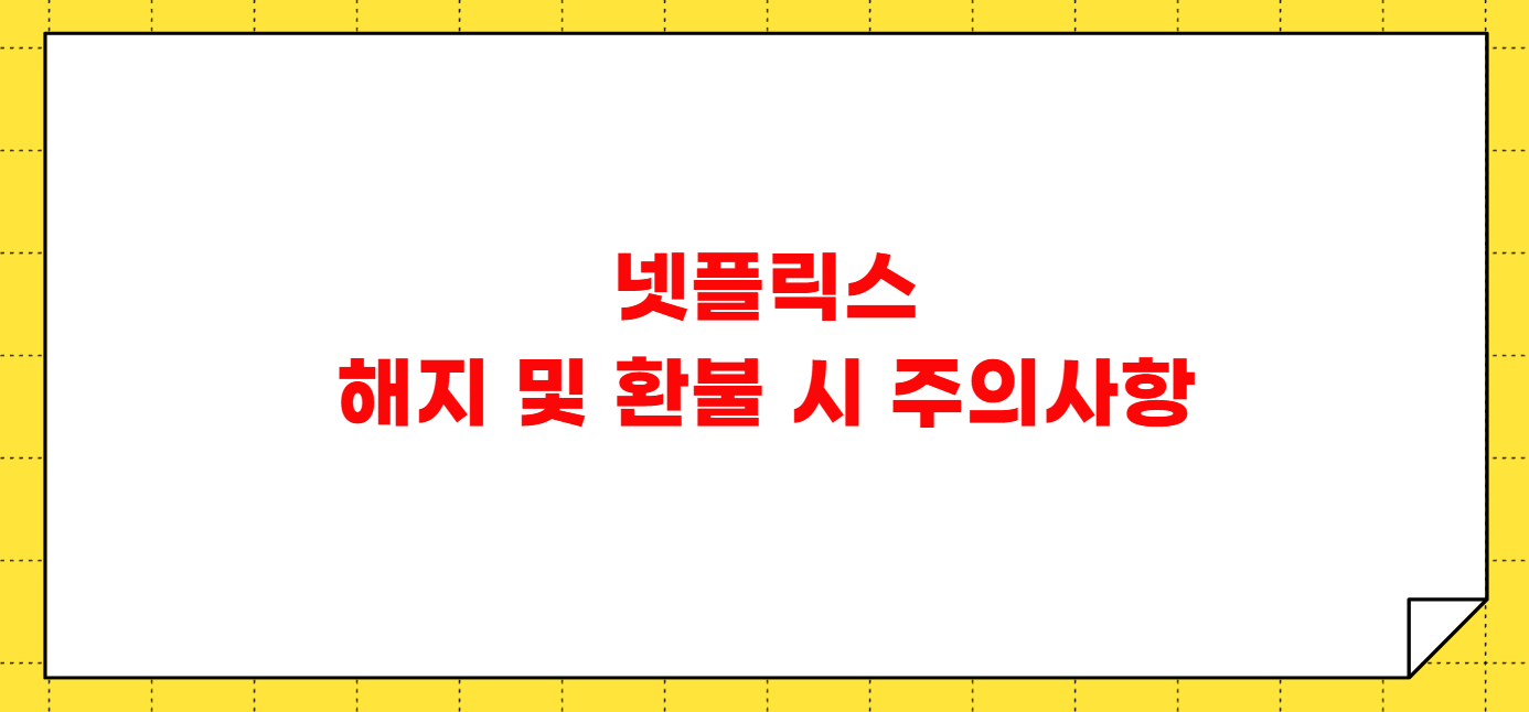 넷플릭스 해지방법과 환불방법은 간단하면서도 몇 가지 중요한 사항을 이해하고 진행해야 하는 절차입니다. 넷플릭스는 사용자 친화적인 플랫폼으로, 해지와 관련된 모든 절차를 투명하게 제공합니다. 하지만 환불의 경우, 정책에 따라 제한적일 수 있으니 이를 염두에 두고 진행하시기 바랍니다.