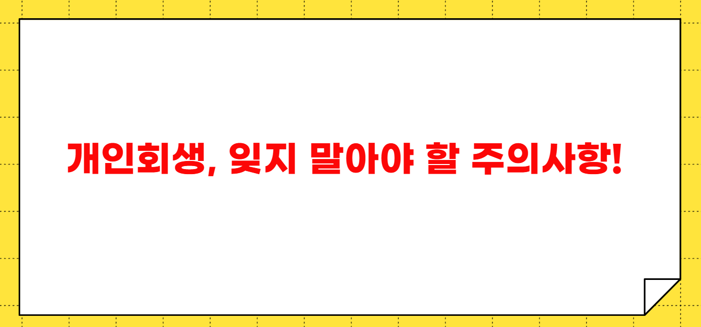 개인회생은 긍정적인 측면이 많지만, 몇 가지 주의해야 할 사항이 있습니다. 개인회생을 신청하기 전에 반드시 숙지해야 할 내용입니다.