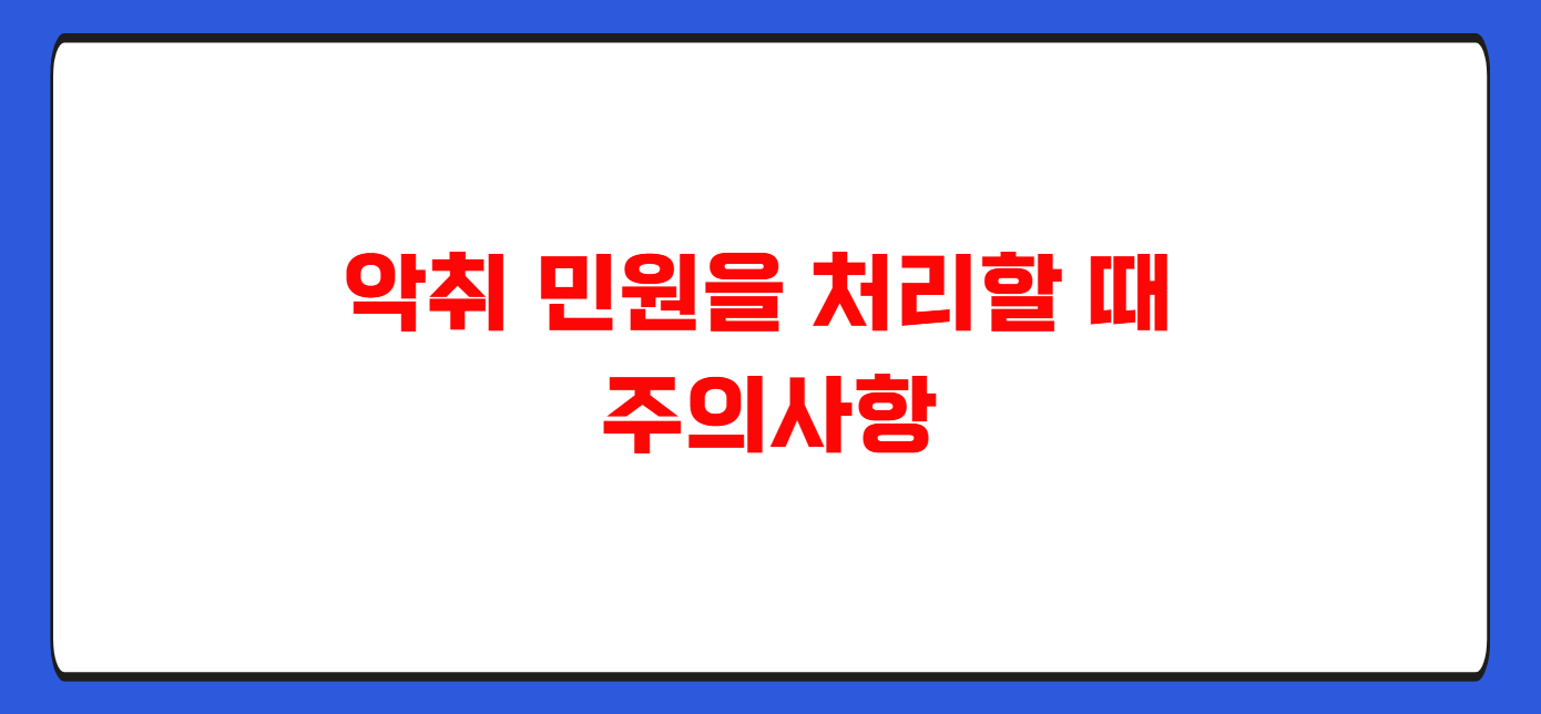 악취는 일상생활의 질에 큰 영향을 미치는 문제입니다. 지속적인 관심과 신고를 통해 건강하고 쾌적한 환경을 유지합시다.