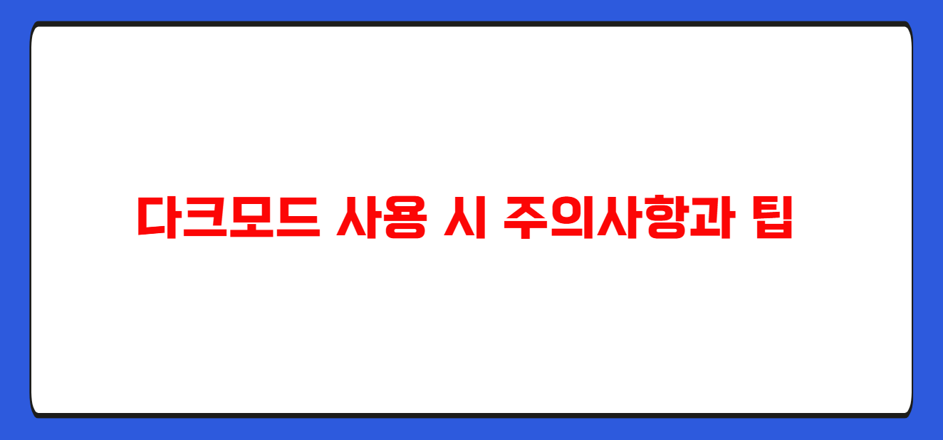 다크모드는 매우 유용한 기능이지만, 몇 가지 주의사항과 팁을 알아두면 더욱 효과적으로 사용할 수 있습니다.