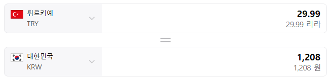 | 개인 요금제 (월) | TRY 29.99 | 약 1,208원 |