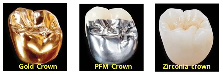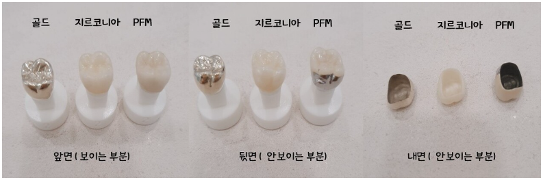 어금니 : 강도가 중요하므로 골드나 지르코니아 적합