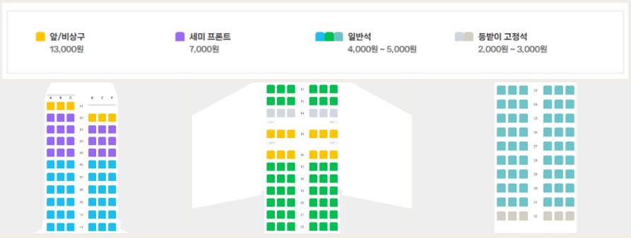 일부 좌석은 추가 요금이 발생할 수 있으니, 예약 과정에서 요금을 꼼꼼히 확인하세요.