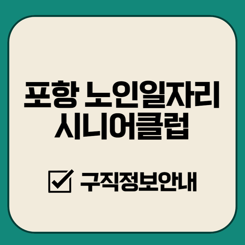 포항 노인일자리 시니어클럽은 60세 이상의 노인을 대상으로 하는 노인일자리 사업을 운영하는 기관입니다. 포항시청과 한국노인인력개발원이 주관하고, 한국노인인력개발원 포항지사가 위탁 운영하고 있습니다.
