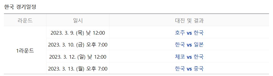 WBC 대한민국 일정은 B조에 속한 우리나라는 호주, 일본, 중국, 체코와 1라운드를 펼치게 됩니다.