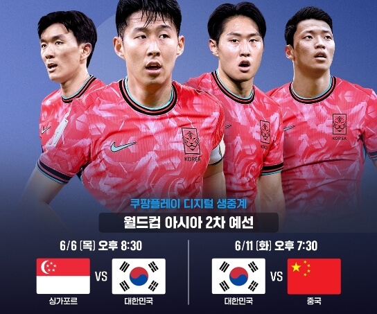 싱가포르 대한민국 중계는 쿠팡플레이, SBS, MBC를 통해 시청하실 수 있습니다.